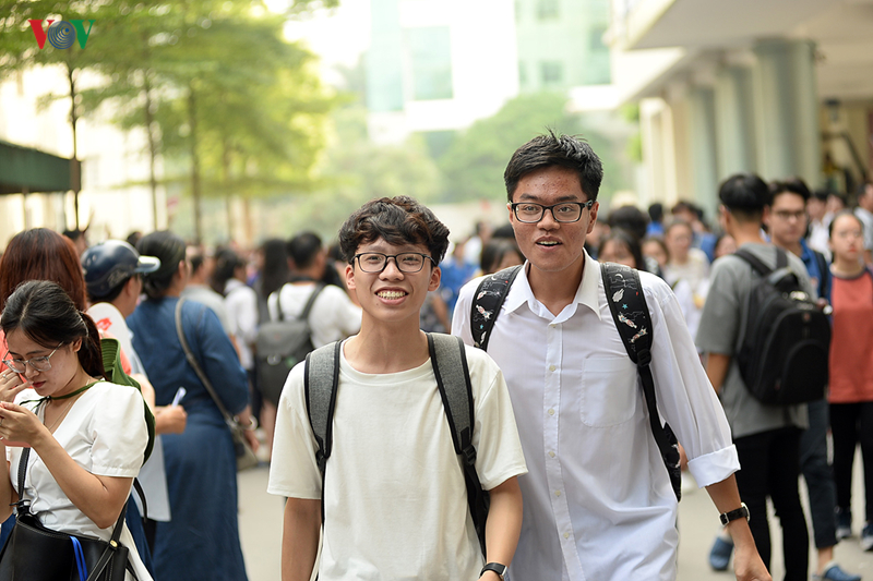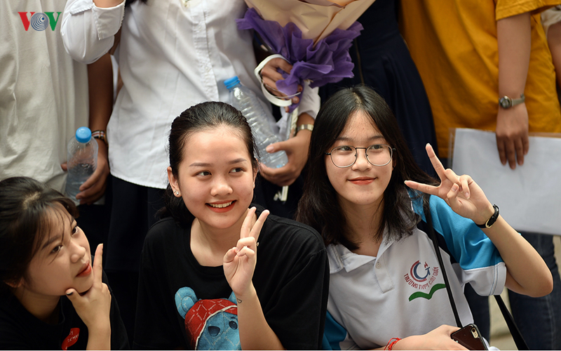 Sau khi ra khỏi phòng thi nhiều thí sinh tỏ ra vui mừng khi hoàn thành tốt môn thi đầu tiên kỳ thi THPT Quốc gia 2019.