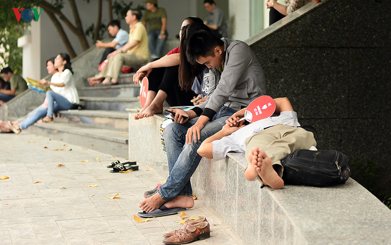 Bên ngoài phòng thi nhiều phụ huynh khắc khoải chờ đợi, nằm vạ vật chờ con thi.