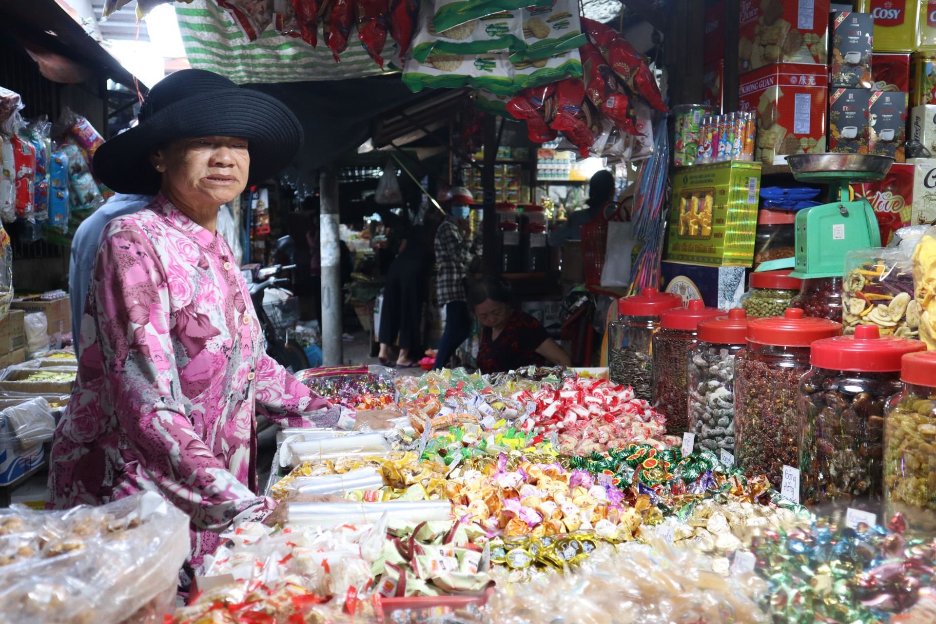 Cô Trần Thị Phượng Liên, một tiểu thương bán bánh kẹo tại chợ Long Hoa lo lắng chia sẻ, trong năm 2020, cô đã bỏ rất nhiều hàng hoá vì hết hạn sử dụng, không bán được. Dự định không bán dịp Tết nhưng vì kinh doanh lâu năm, đã có khách quen cô vẫn cố gắng đầu tư gian hàng bánh mứt tết để bán giữ khách. Tuy nhiên, cô chỉ dám nhập mỗi loại vài ký bán cầm chừng chứ không dám nhập nhiều vì sợ tồn hàng, sau tết khó bán.