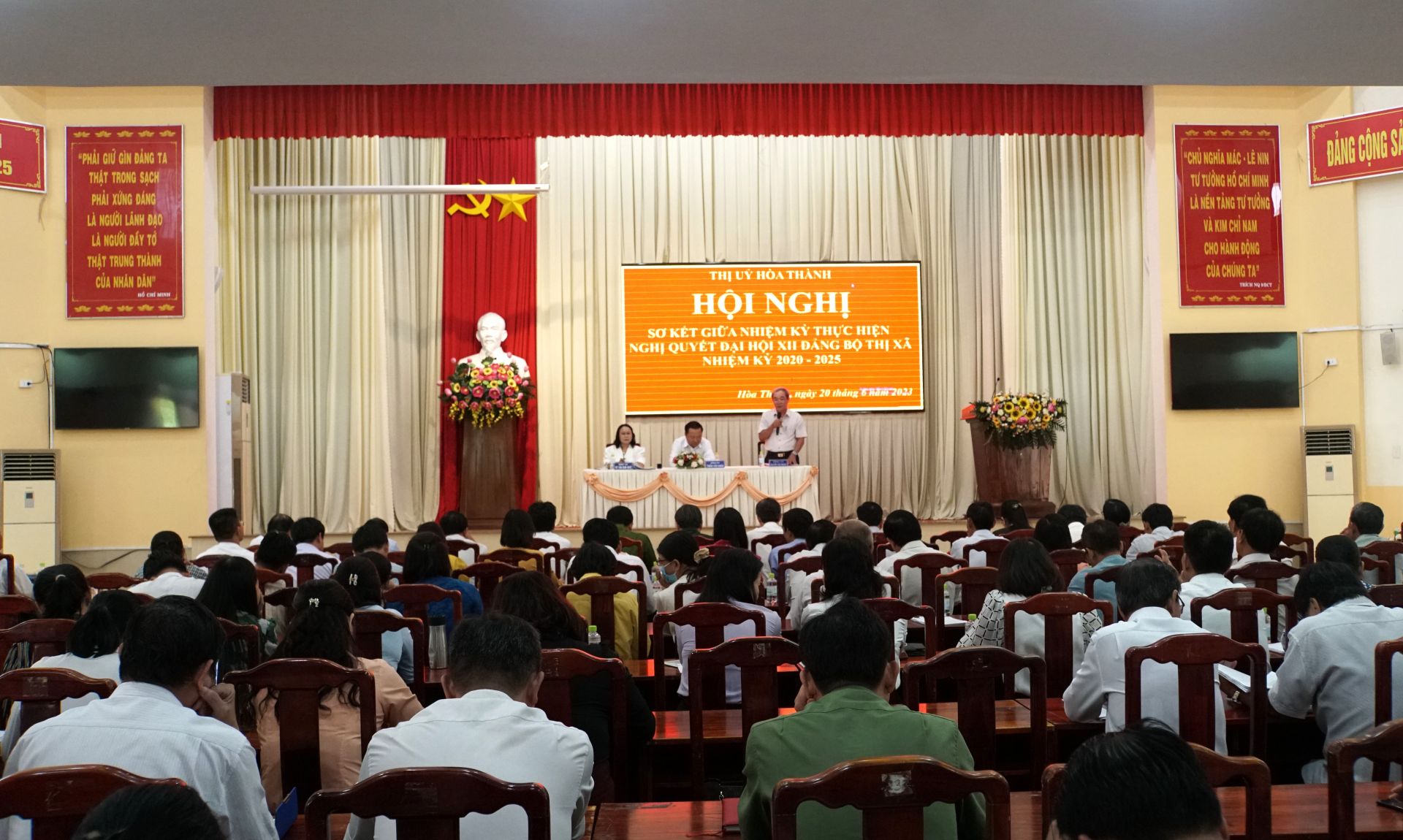 Sáng 20.6, Thị uỷ Hoà Thành tổ chức Hội nghị sơ kết giữa nhiệm kỳ thực hiện Nghị quyết Đại hội XII Đảng bộ Thị xã nhiệm kỳ 2020-2025 dưới sự chủ trì, điều hành của Bí thư Thị uỷ Trần Văn Khải, Phó Bí thư Thị uỷ Nguyễn Văn Phong, Chủ nhiệm Uỷ ban Kiểm tra Thị uỷ Võ Thị Kim Huệ.