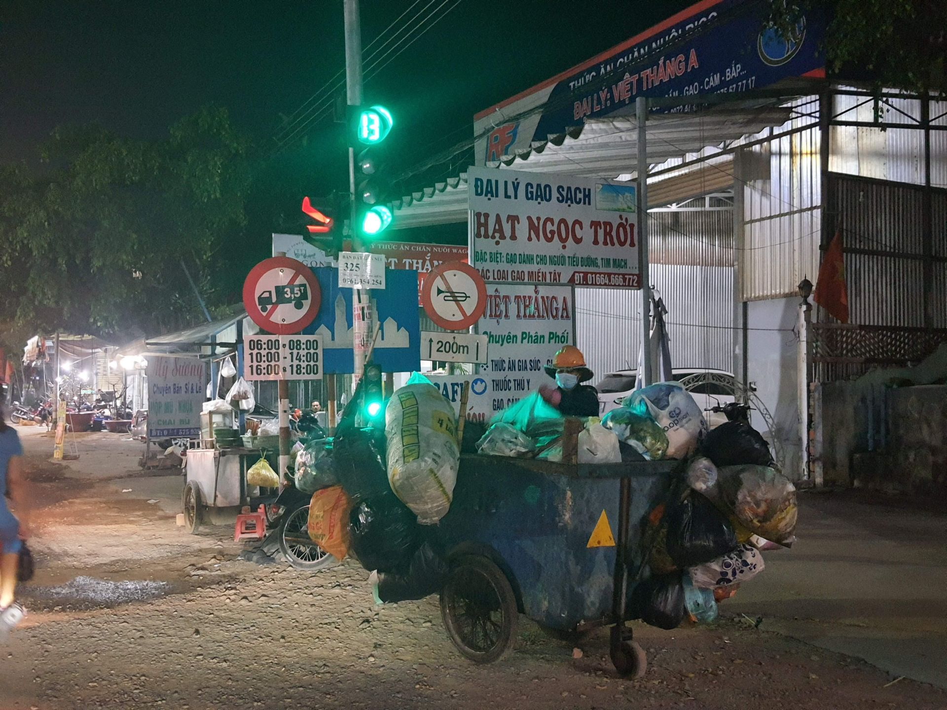 Nhân viên công ty cổ phần công trình đô thị Tây Ninh đi thu gom rác sinh hoạt trên địa bàn thị xã Hòa Thành.