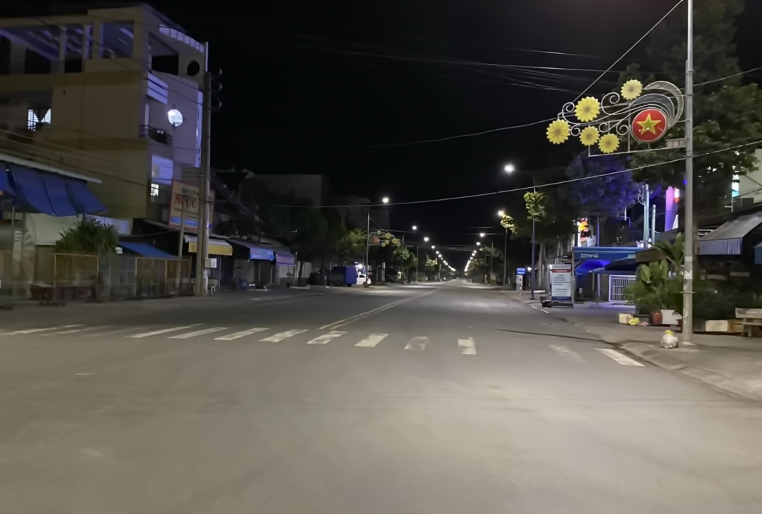 Tại Thị xã Hoà Thành, đường vắng tanh, người dân chấp hành tốt quy định, không ra khỏi nhà từ 18 giờ hôm ngày trước đến 6 giờ sáng ngày hôm sau.