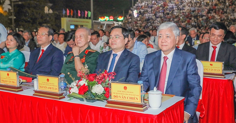 Bí thư Trung ương Đảng, Chủ tịch Ủy ban Trung ương Mặt trận Tổ quốc Việt Nam Đỗ Văn Chiến và Bí thư Tỉnh ủy Bắc Ninh Nguyễn Anh Tuấn cùng các đại biểu (Ảnh: Nguyên Thành)