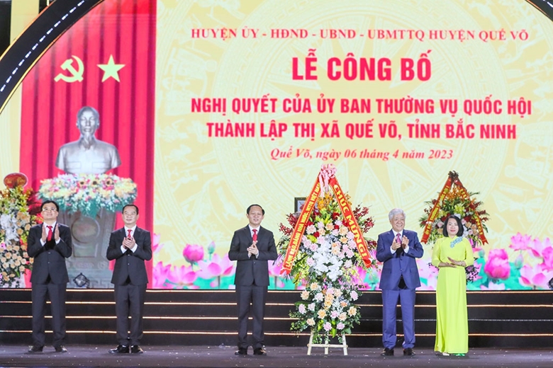 Ngày 13/02/2023, Ủy ban Thường vụ Quốc hội khóa 15 đã ban hành Nghị quyết 723/NQ-UBTVQH 15 về việc thành lập thị xã Quế Võ và các phường thuộc thị xã Quế Võ. Đây là sự kiện chính trị - pháp lý, là dấu ấn quan trọng khẳng định quá trình phát triển vượt bậc của Quế Võ - là niềm vinh dự, tự hào của Đảng bộ, Chính quyền và Nhân dân.