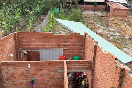 Một căn nhà của người dân ở xã Hưng Thuận bị tốc mái hoàn toàn sau cơn mưa đêm 2.4.2021