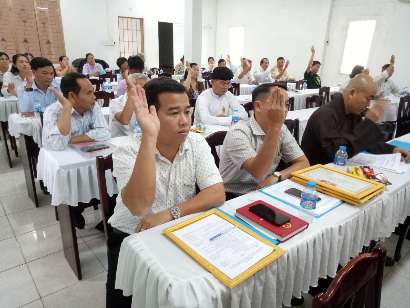 Hội nghị biểu quyết hiệp thương, bổ sung bà Hà Thị Cẩm Tiên– Bí thư Thị đoàn và ông Phạm Văn Lập (Lễ sanh Thái Lập Thanh)– Họ đạo liên ấp Bình Hoà, Bình Thuận, xã Phước Bình tham gia Uỷ viên Uỷ ban MTTQVN thị xã Trảng Bàng khoá XI, nhiệm kỳ 2024-2029.