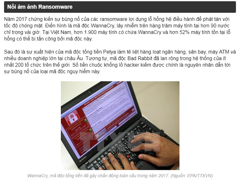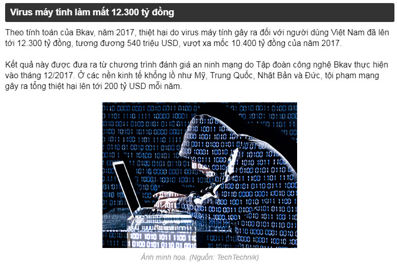 Thống kê từ Công ty An ninh mạng Bkav cho thấy, thiệt hại do virus máy tính gây ra tại Việt Nam năm 2017 đã đạt con số kỷ lục.