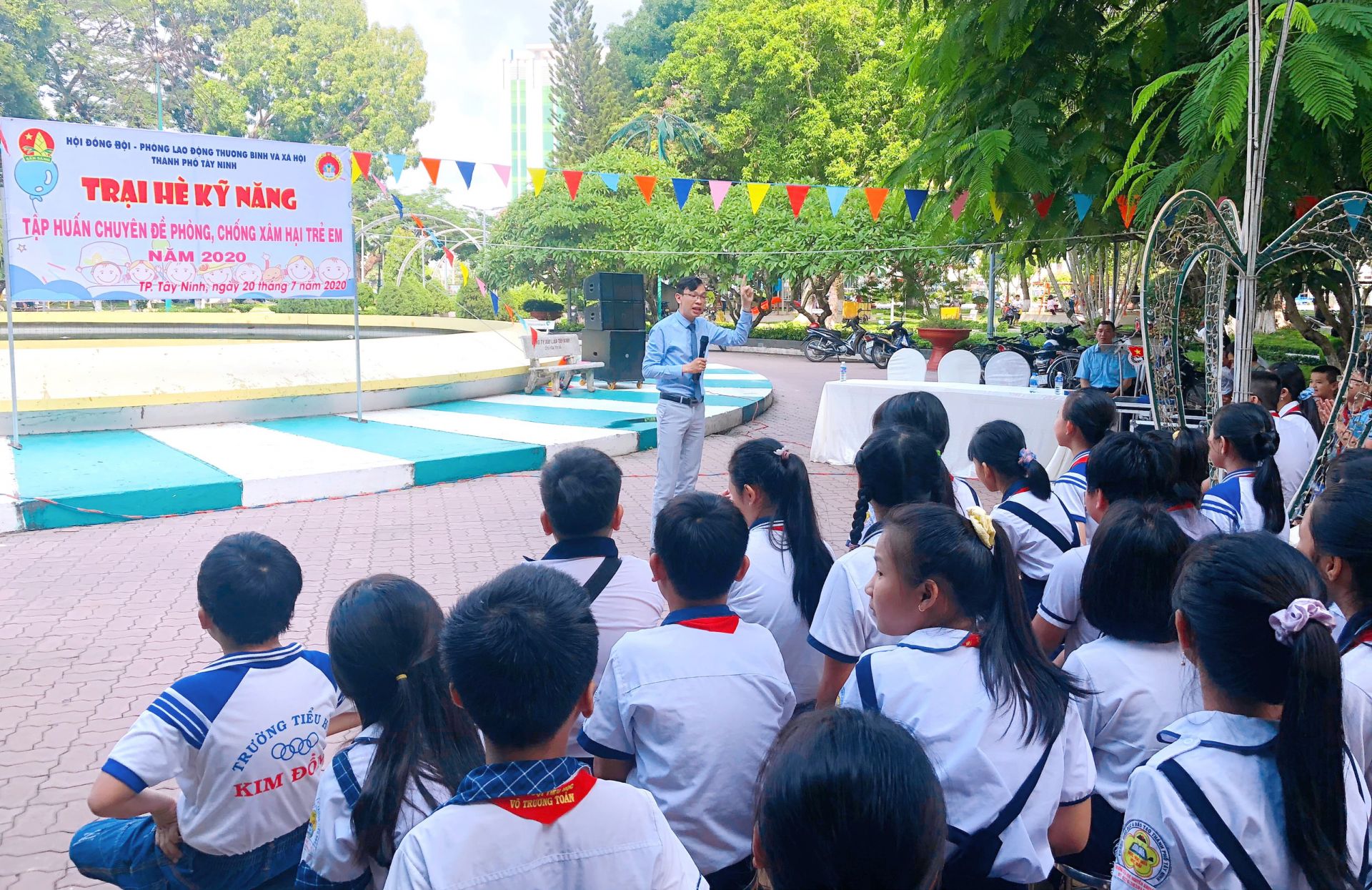 Hôm 20.7, tại Công viên 30.4, Hội đồng Đội thành phố Tây Ninh phối hợp với Phòng Lao động, thương binh và xã hội thành phố tổ chức Trại hè kỹ năng năm 2020 với nội dung “Tập huấn chuyên đề phòng, chống xâm hại trẻ em”. Hoạt động thu hút hơn 200 thiếu nhi trên địa bàn tham gia.