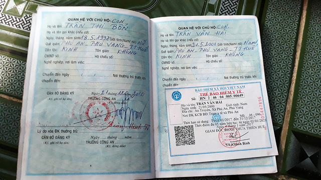 Sổ hộ khẩu, thẻ bảo hiểm y tế của em Trần Văn Hải bị ghi nhầm giới tính trước khi được chỉnh sửa - Ảnh: NHẬT LINH