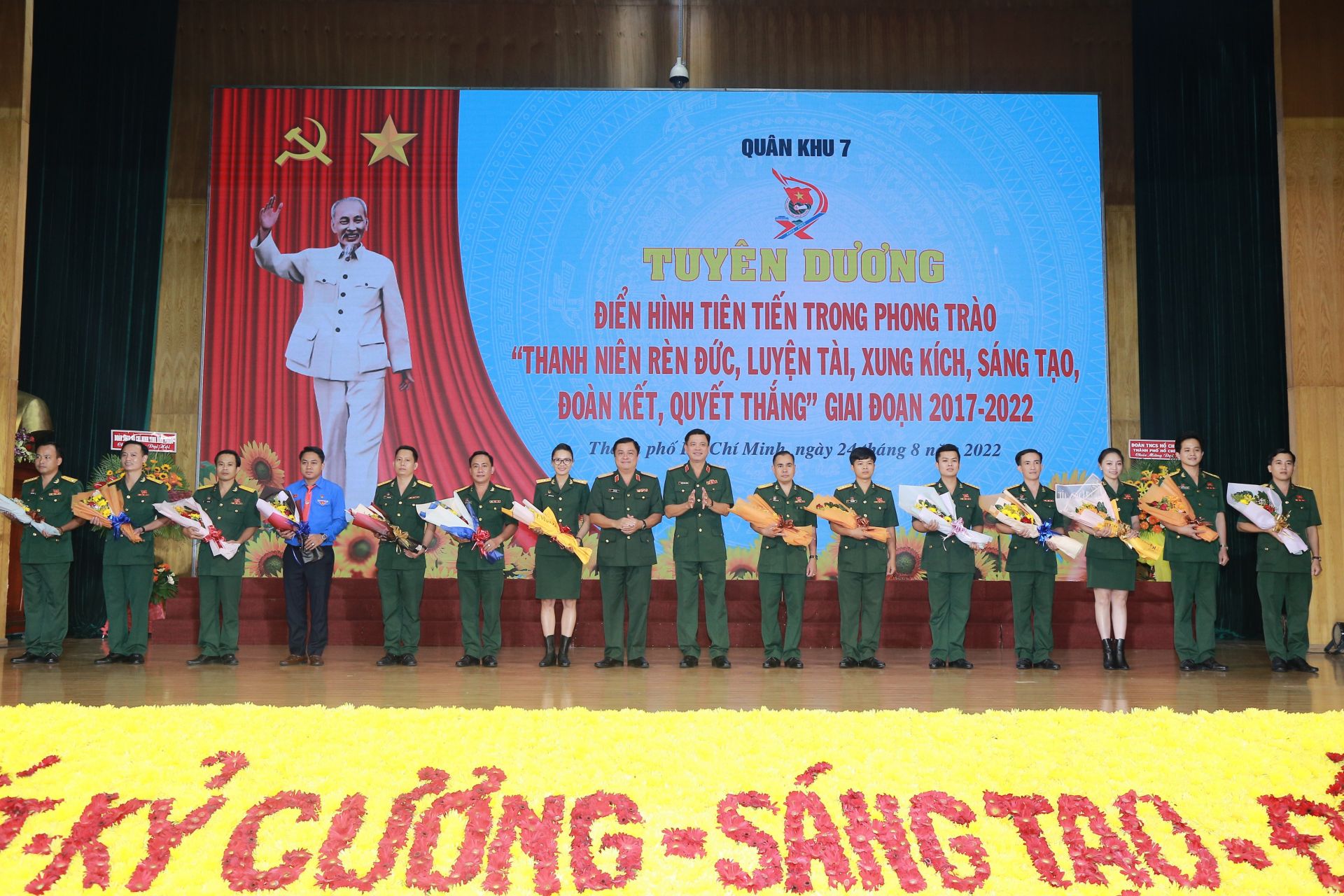 Thiếu tá Hoàng Đức Danh (đứng thứ 7 từ phải qua) được Quân khu 7 tuyên dương điển hình tiên tiến trong phong trào “Thanh niên rèn đức, luyện tài, xung kích, sáng tạo, đoàn kết, quyết thắng” giai đoạn 2017-2022.
