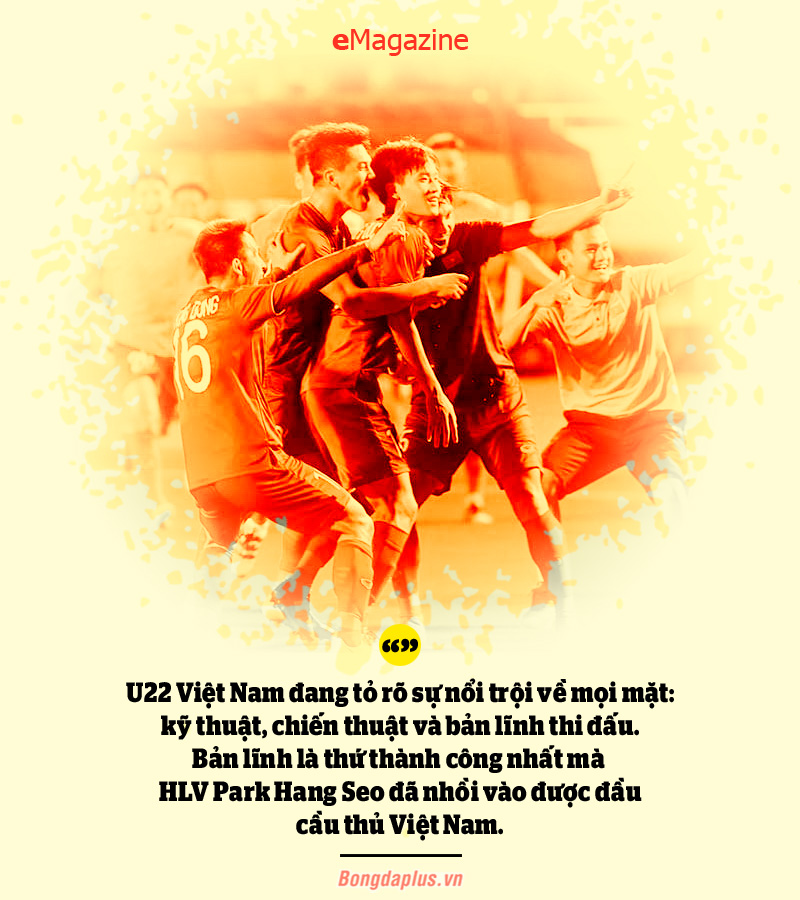 Nhưng mọi thứ thật sự đã khác rồi. U22 Việt Nam đang tỏ rõ sự nổi trội về mọi mặt: kỹ thuật, chiến thuật và bản lĩnh thi đấu. Bản lĩnh là thứ thành công nhất mà HLV Park Hang Seo đã nhồi vào được đầu cầu thủ Việt Nam.