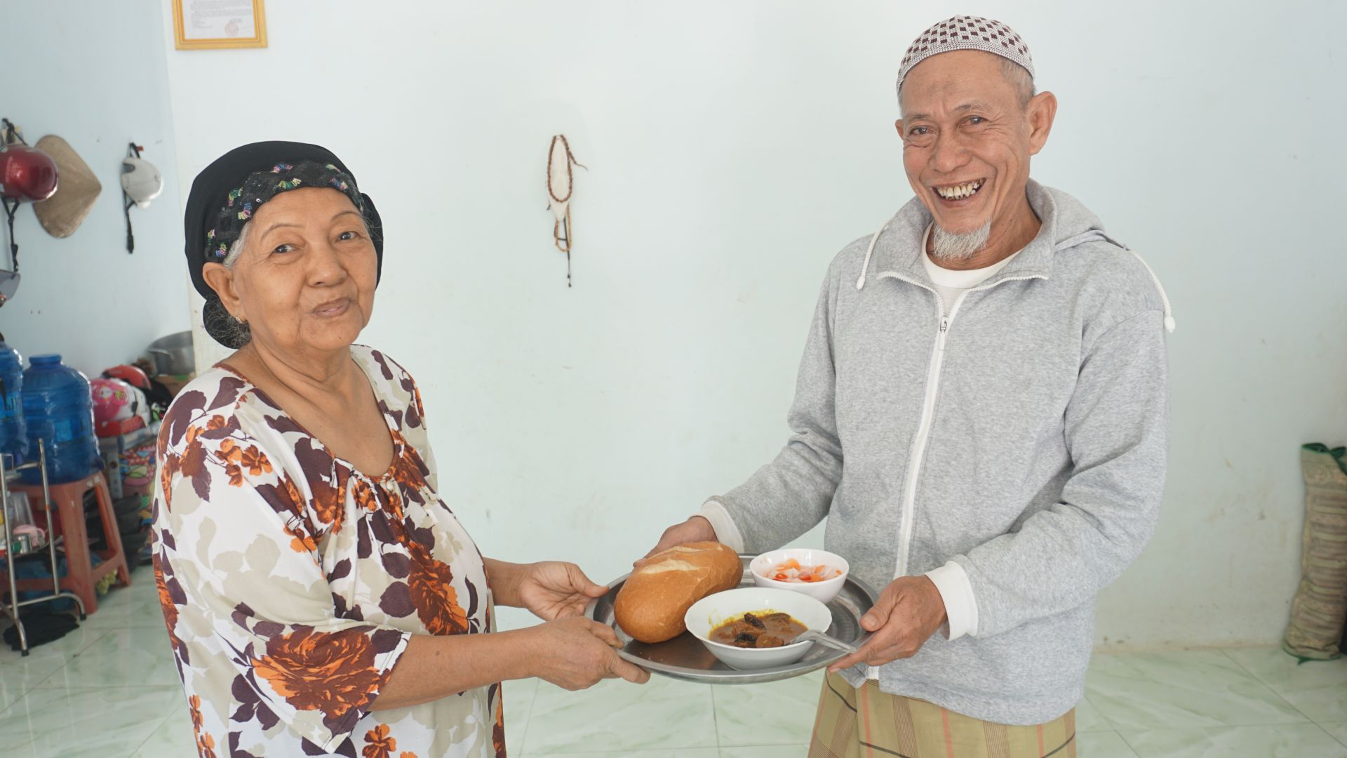 Một ngày đầu tháng Chạp, trong căn bếp nhỏ, bà Mari Dah (65 tuổi) tất bật nạo dừa, giã gia vị chuẩn bị nấu cà ri vì con cháu lại thèm ăn. Để nấu cà ri, vợ chồng ông bà đặt mua thịt bò của một mối quen từ Campuchia. Bà giải thích: “Người Chăm chúng tôi khi ăn thịt bò phải biết rõ nguồn gốc”.