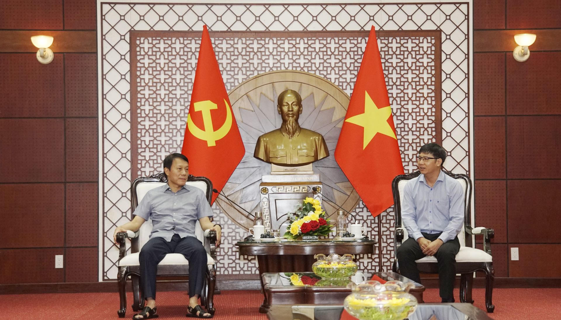 Bí thư Tỉnh uỷ, Chủ tịch HĐND tỉnh Nguyễn Thành Tâm tiếp Thượng tướng Lương Tam Quang.