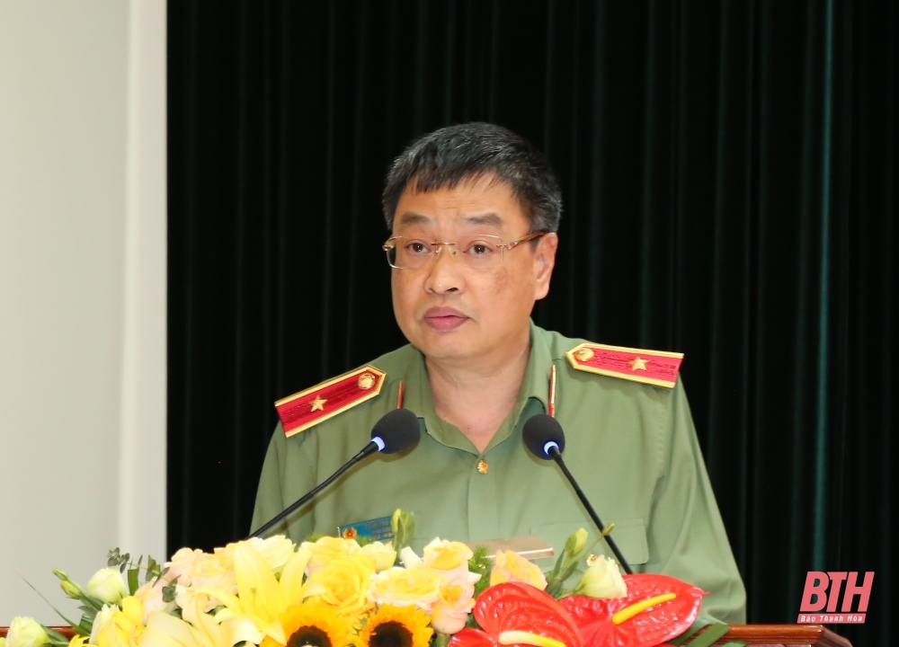 Thiếu tướng Trần Phú Hà, Giám đốc Công an tỉnh phát biểu tại buổi thông báo.