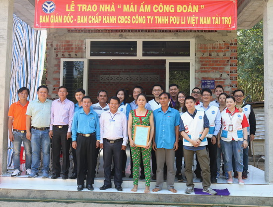 Dịp này, ban lãnh đạo Công ty TNHH Pou Li Việt Nam đã có nhiều phần quà chúc mừng gia đình đoàn viên Hồ Thị Kiều Diễm có căn nhà mới ổn định cuộc sống.