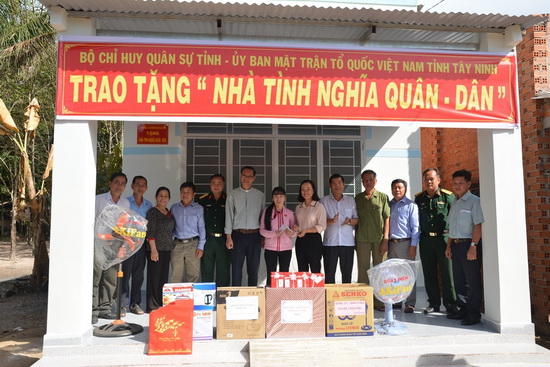* Tại Tân Châu, Bộ CHQS cùng với UB.MTTQ tỉnh phối hợp với xã Suối Dây tổ chức lễ bàn giao căn nhà tình nghĩa quân - dân cho gia đình chị Hoàng Thị Nga (sinh năm 1982 ngụ ấp 2, xã Suối Dây).