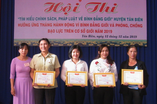 * Hưởng ứng Tháng hành động vì bình đẳng giới và phòng chống bạo lực trên cơ sở giới năm 2019, mới đây, UBND huyện Tân Biên tổ chức Hội thi tìm hiểu pháp luật về bình đẳng giới, với sự tham gia của 50 cán bộ, công chức, viên chức và tuyên truyền viên của 10 đội đến từ các xã, thị trấn trong huyện.