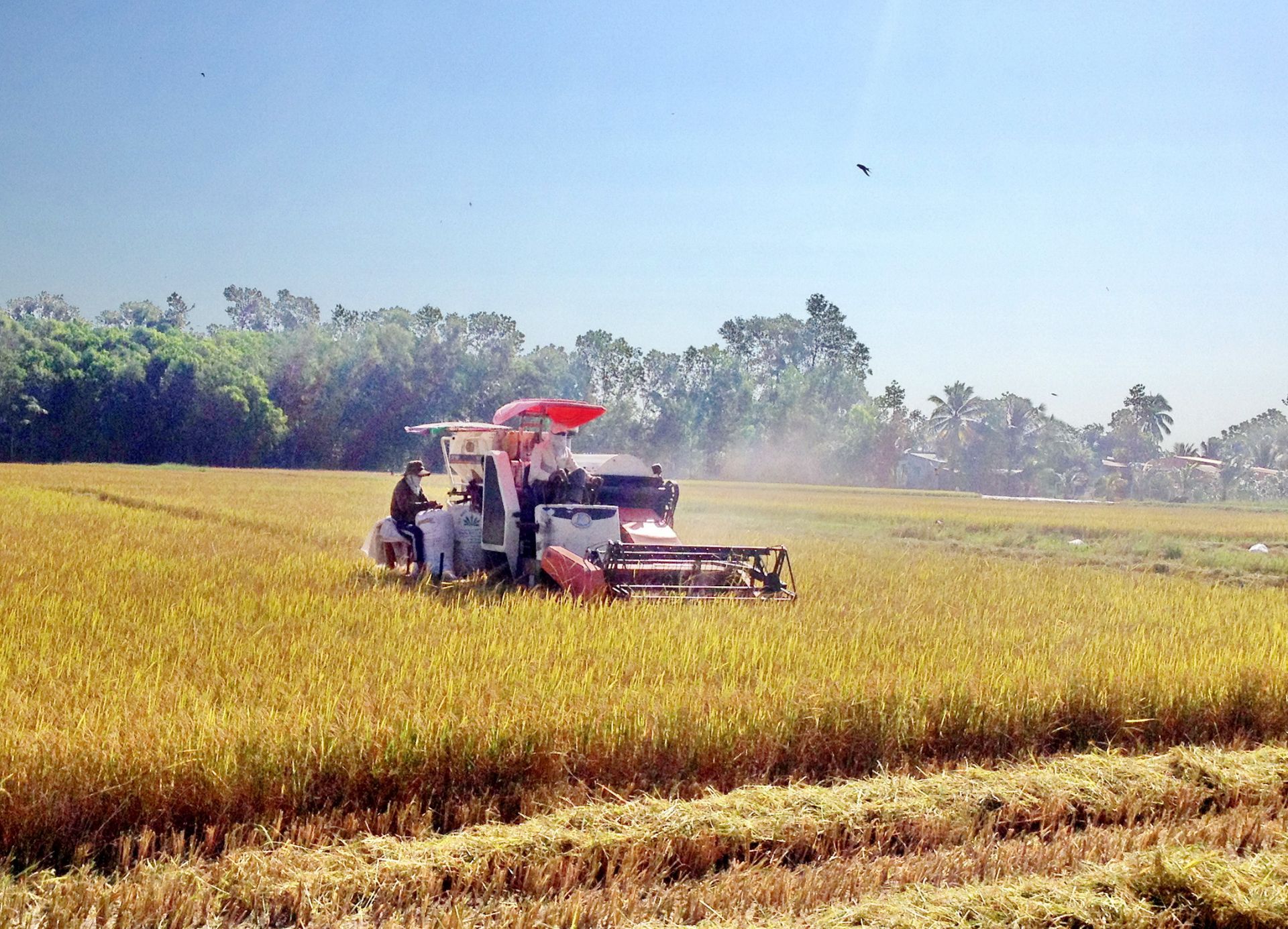 Thu hoạch lúa Đông xuân tại phường Long Thành Trung, thị xã Hòa Thành.