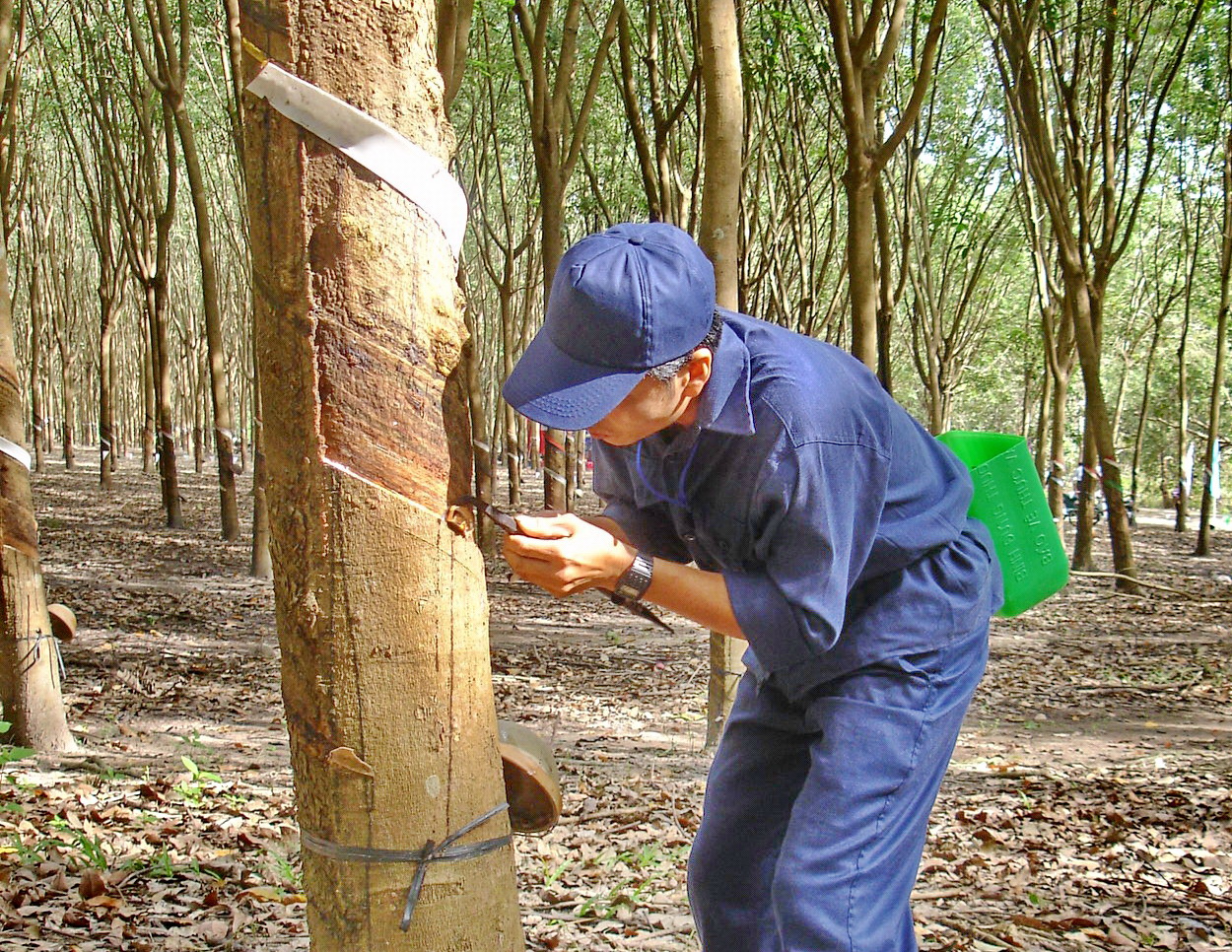 Công nhân Công ty Cao su Tân Biên khai thác mủ cao su.