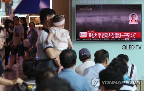 Người dân Hàn Quốc theo dõi bản tin tại ga Seoul về vụ thử hạt nhân của Triều Tiên hôm 3/9. Ảnh: Yonhap |