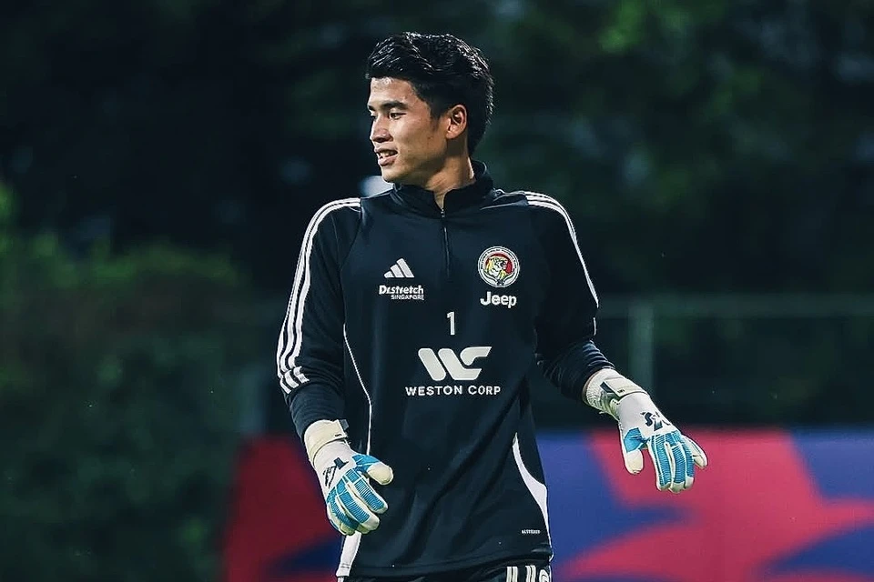 Thủ môn Hồ Tùng Hân trong màu áo Balestier Khalsa. Ảnh: Balestier Khalsa.