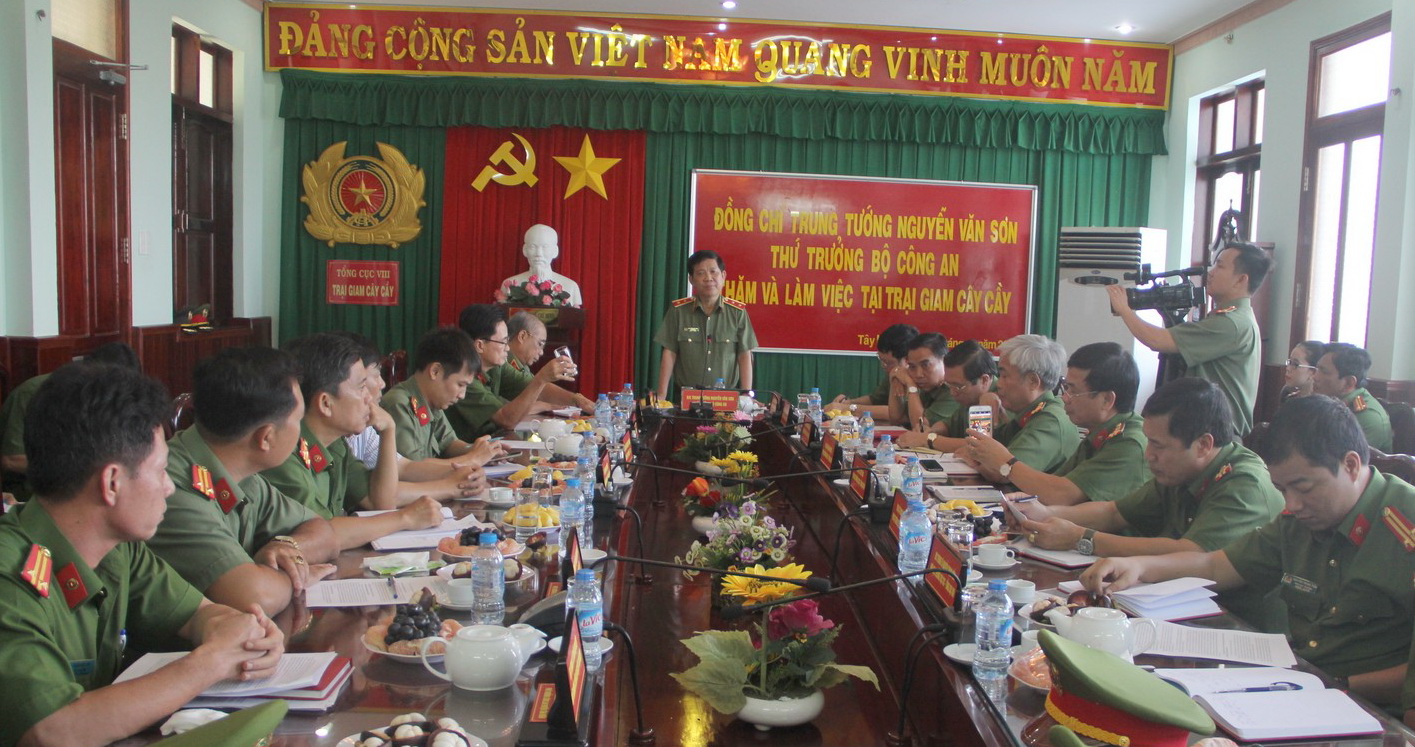 Chiều 27.7, trung tướng Nguyễn Văn Sơn- Thứ trưởng Bộ Công an cùng đoàn công tác đến thăm và làm việc với Trại giam Cây Cầy (Tổng cục VIII, đóng tại huyện Tân Biên, Tây Ninh).