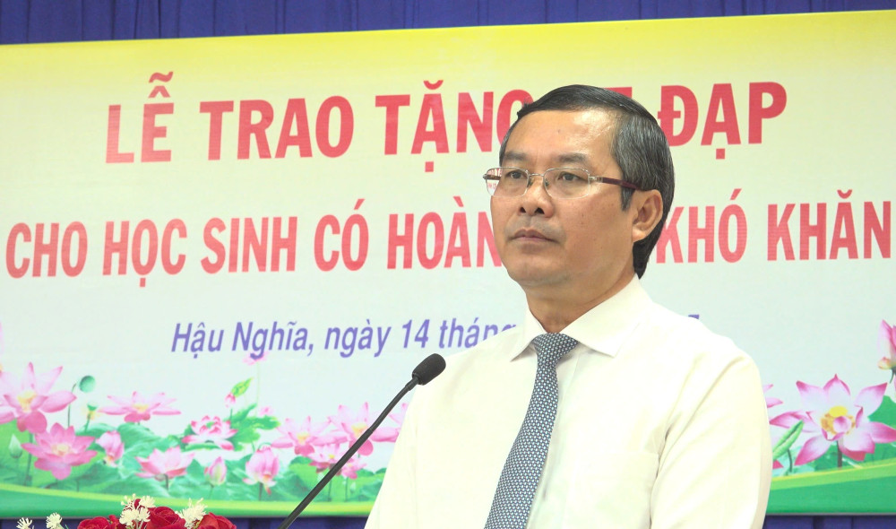 Thay mặt địa phương, Phó Bí thư Đảng ủy, Chủ tịch UBND xã Hậu Nghĩa Trương Minh Hoàng bày tỏ sự tri ân đối với Thứ trưởng Bộ Giáo dục và Đào tạo cùng đơn vị tài trợ đã quan tâm, đồng hành cùng địa phương, góp phần hỗ trợ học sinh có hoàn cảnh khó khăn thuận lợi hơn trên con đường đến trường; động viên các em chăm ngoan, học giỏi./.