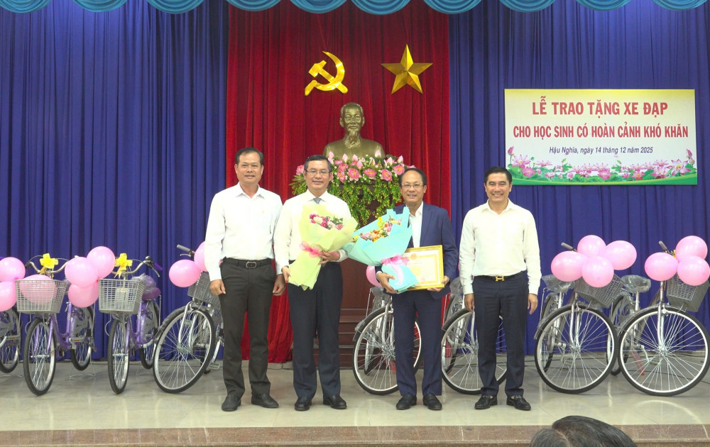 Ngày 14/12, tại hội trường UBND xã Hậu Nghĩa, tỉnh Tây Ninh, Thứ trưởng Bộ Giáo dục và Đào tạo Nguyễn Văn Phúc cùng phu nhân đến tặng xe đạp cho học sinh có hoàn cảnh khó khăn trên địa bàn các xã: Đức Hòa và Hậu Nghĩa.