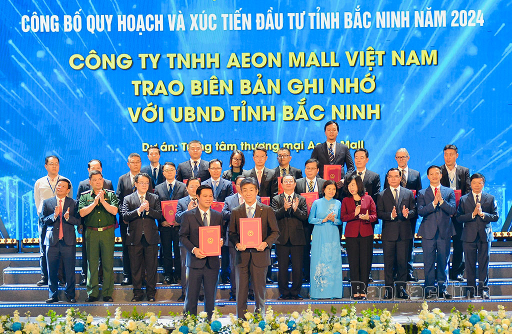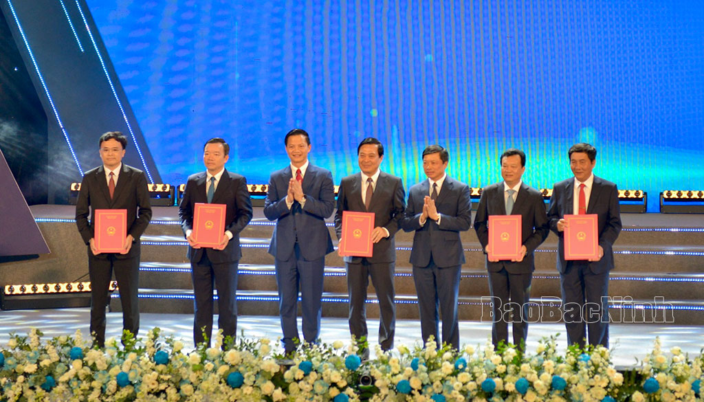 Trước sự chứng kiến của Thủ tướng Chính phủ Phạm Minh Chính, lãnh đạo các bộ, ngành Trung ương và tỉnh Bắc Ninh, Chủ tịch UBND tỉnh Vương Quốc Tuấn và Phó Chủ tịch Thường trực UBND tỉnh Đào Quang Khải trao Quyết định quy hoạch phân khu cho 5 huyện, thị xã, thành phố (Yên Phong, Tiên Du, thị xã Quế Võ, thành phố Bắc Ninh và Từ Sơn). Các đồng chí lãnh đạo UBND tỉnh trao Quyết định chủ trương đầu tư, Giấy chứng nhận đăng ký đầu tư, Biên bản ghi nhớ, Thỏa thuận nguyên tắc cho các dự án đầu tư có quy mô lớn trên địa bàn tỉnh.