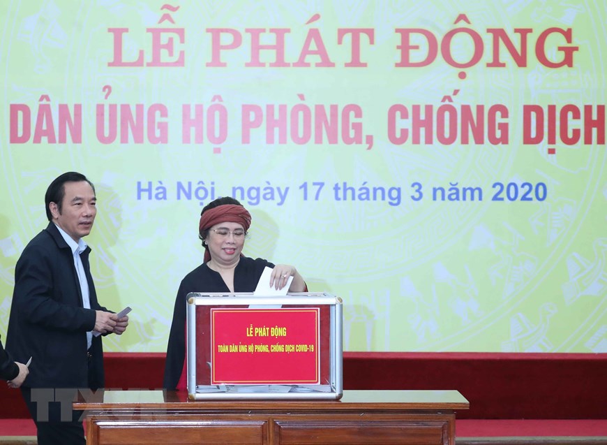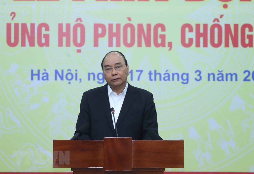 Sáng 17/3, tại Hà Nội, Thủ tướng Nguyễn Xuân Phúc dự Lễ phát động toàn dân ủng hộ công tác phòng, chống dịch COVID-19 do Đoàn Chủ tịch Ủy ban Trung ương Mặt trận Tổ quốc Việt Nam kêu gọi.