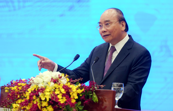 Thủ tướng Nguyễn Xuân Phúc nhấn mạnh, các doanh nghiệp Việt Nam, doanh nghiệp nước ngoài đầu tư tại Việt Nam gắn liền với niềm tự hào của dân tộc Việt Nam, một dân tộc luôn biết vượt qua khó khăn, thử thách.