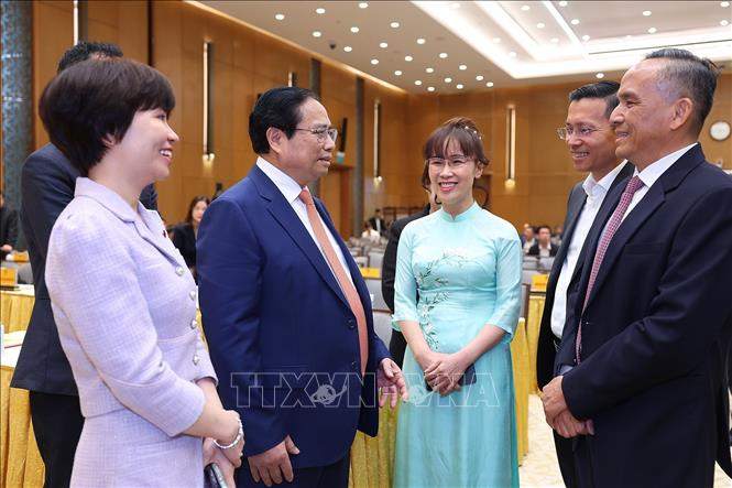 Thủ tướng Phạm Minh Chính với các đại biểu dự hội nghị. Ảnh: Dương Giang/TTXVN