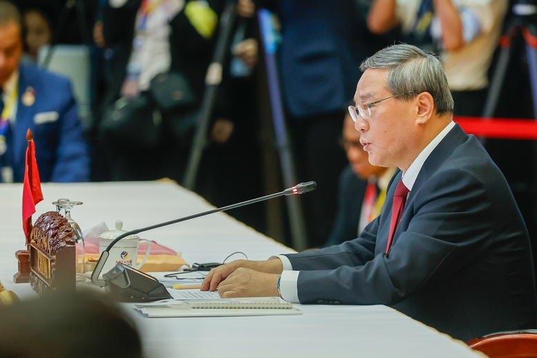 Thủ tướng Trung Quốc Lý Cường khẳng định tiếp tục ưu tiên phát triển và tăng cường kết nối chặt chẽ giữa các nền kinh tế khu vực, triển khai hiệu quả Hiệp định Thương mại tự do ASEAN-Trung Quốc và Hiệp định Đối tác kinh tế toàn diện khu vực (RCEP) - Ảnh: VGP/Nhật Bắc