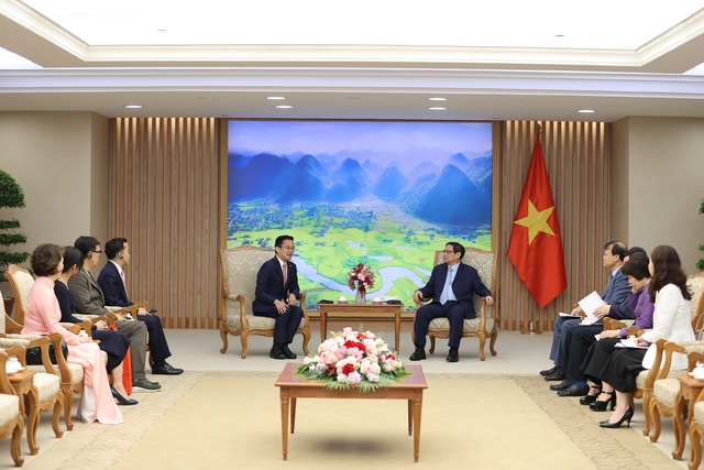 Thủ tướng Phạm Minh Chính tiếp ông Jormsup Lochaya, Chủ tịch Tập đoàn năng lượng Super Energy của Thái Lan - Ảnh: VGP/Nhật Bắc
