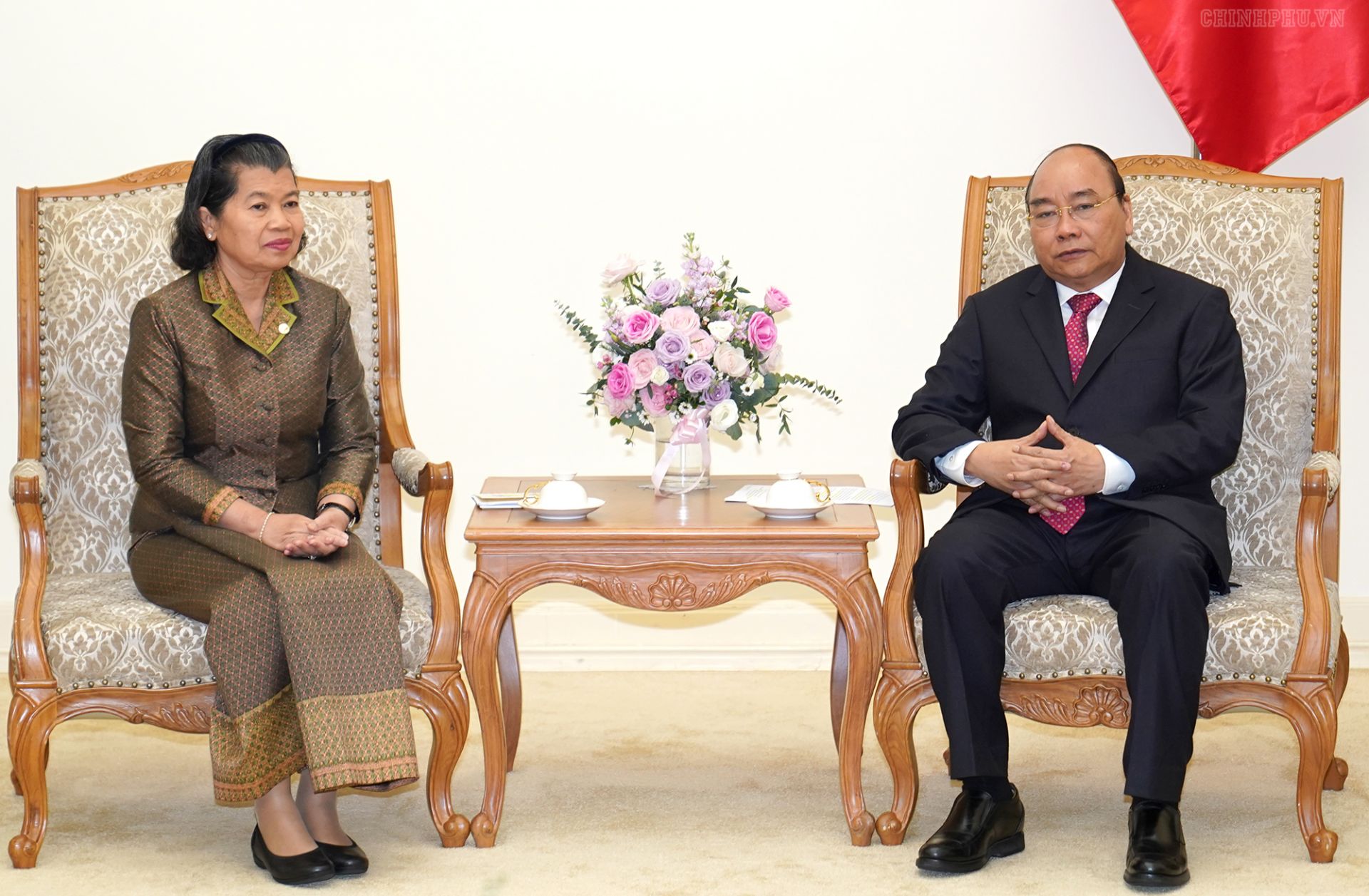 Hoan nghênh chuyến thăm của bà Phó Thủ tướng, người bạn gần gũi của nhân dân Việt Nam, Thủ tướng đánh giá cao nỗ lực tích cực của bà Men Sam An trong việc thúc đẩy quan hệ hữu nghị hai nước trong suốt những năm qua.