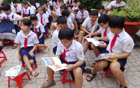 Theo đó, các em được giới thiệu và đọc những quyển sách, quyển truyện có nội dung về gương người tốt việc tốt, gương hiếu học, kiến thức bách khoa… Nhiều em rất thích thú với hoạt động này, và hào hứng tham gia trả lời các câu đố vui tìm hiểu nội dung sách, truyện.