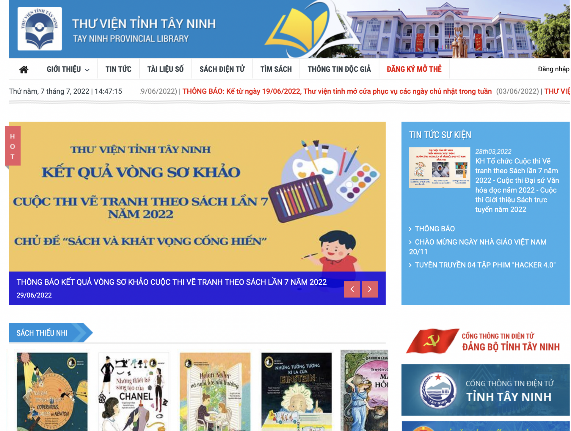 Giao diện Cổng thông tin thư viện số của Thư viện tỉnh Tây Ninh