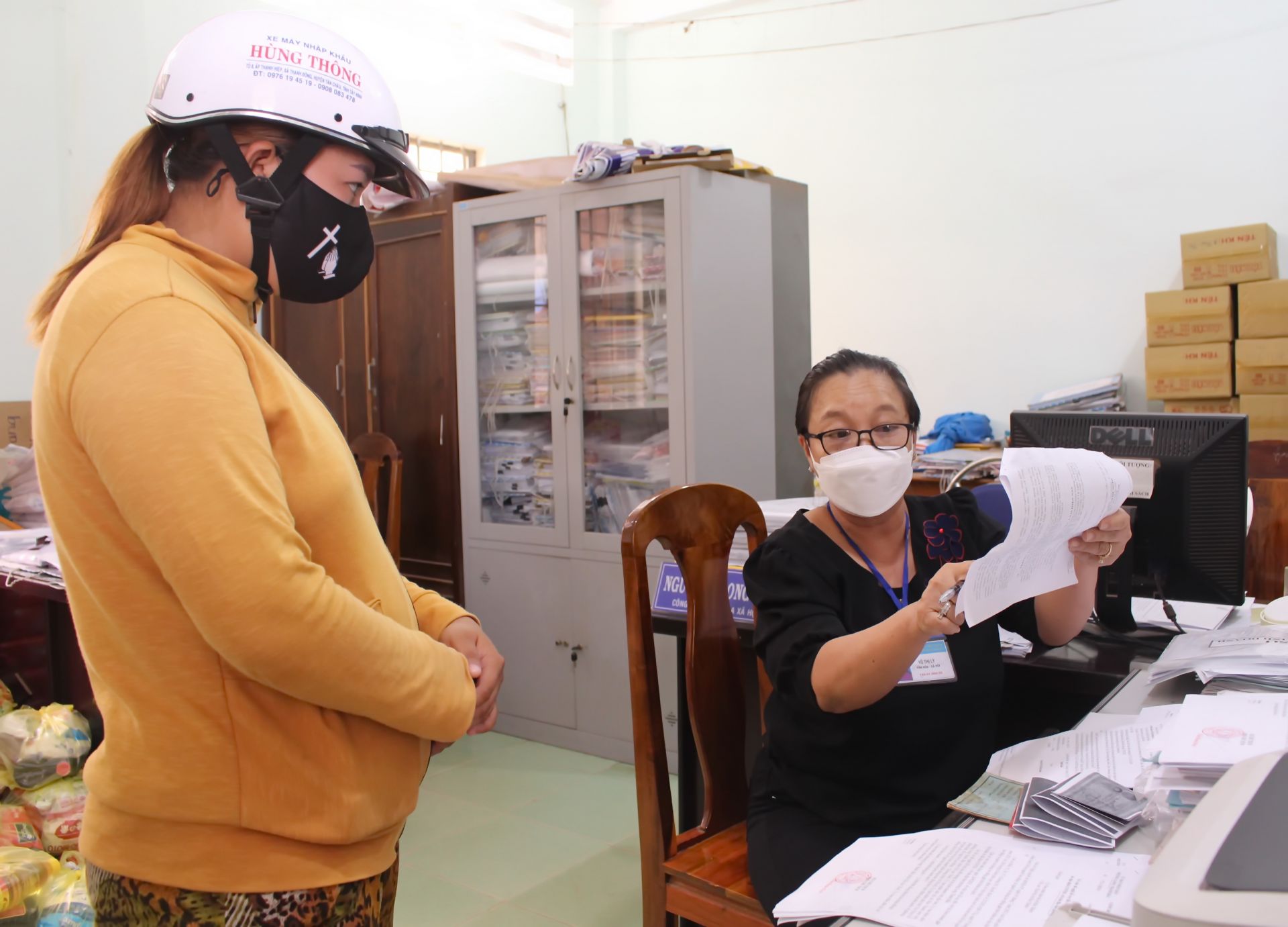 Công chức Văn hoá - Xã hội phường Long Thành Bắc hướng dẫn người lao động tự do làm hồ sơ nhận hỗ trợ.