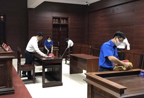 Ðược biết, trước đó, TAND hai cấp đã khử trùng, vệ sinh toàn bộ khuôn viên, phòng làm việc, đặc biệt là phòng xét xử, phòng tiếp dân, phòng họp. Tổ chức mua và trang bị máy đo thân nhiệt, khẩu trang y tế, nước rửa tay, dung dịch sát khuẩn, găng tay cho các đơn vị để thực hiện phòng, chống dịch.