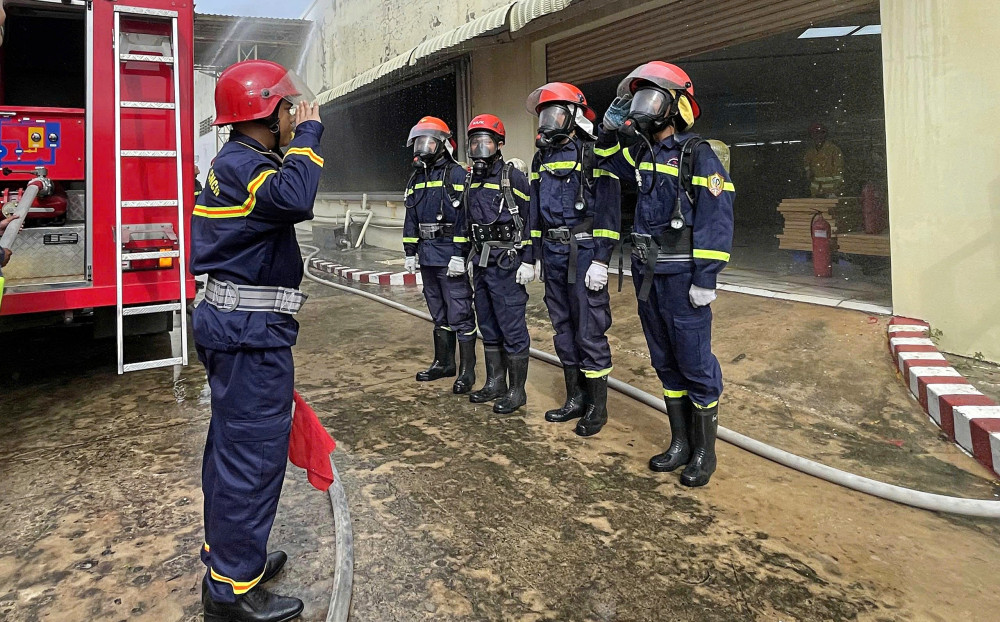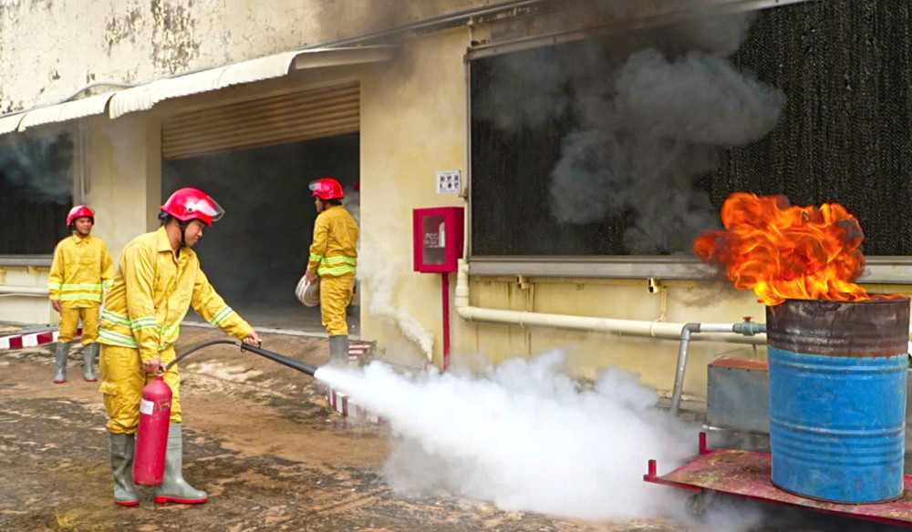 Theo tình huống giả định, vào lúc 8 giờ 30 phút xảy ra cháy tại xưởng A Công ty TNHH Dệt may Hòa Thành. Lực lượng PCCC cơ sở phát hiện ra cháy và báo động, triển khai các hoạt động chữa cháy ban đầu. Tuy nhiên, phương tiện chữa cháy và trang bị bảo hộ cá nhân còn hạn chế, khói khí độc sinh ra bao trùm toàn bộ diện tích nhà kho nên lực lượng PCCC cơ sở không thể tiếp cận gần đến vị trí mặt lửa để triển khai chữa cháy, dẫn đến đám cháy tiếp tục phát triển nhanh.