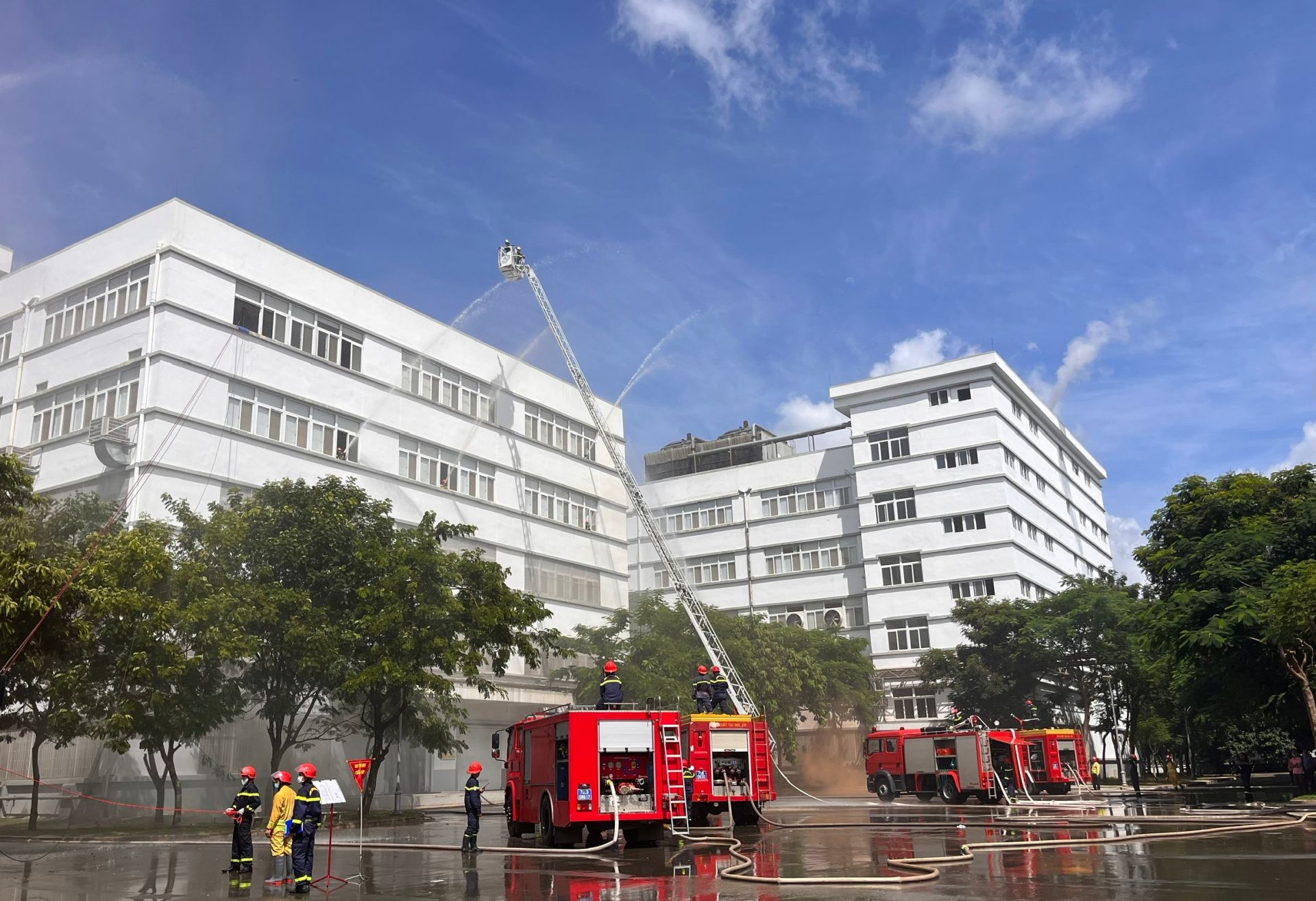 Theo tình huống giả định, vào lúc 9 giờ ngày 8.8.2023 xảy ra cháy tại nhà xưởng thuộc Công ty TNHH may mặc First Team Việt Nam (Khu công nghiệp Thành Thành Công, phường An Hoà, thị xã Trảng Bàng). Điểm xuất phát cháy tại khu vực đóng gói thành phẩm tầng 1.