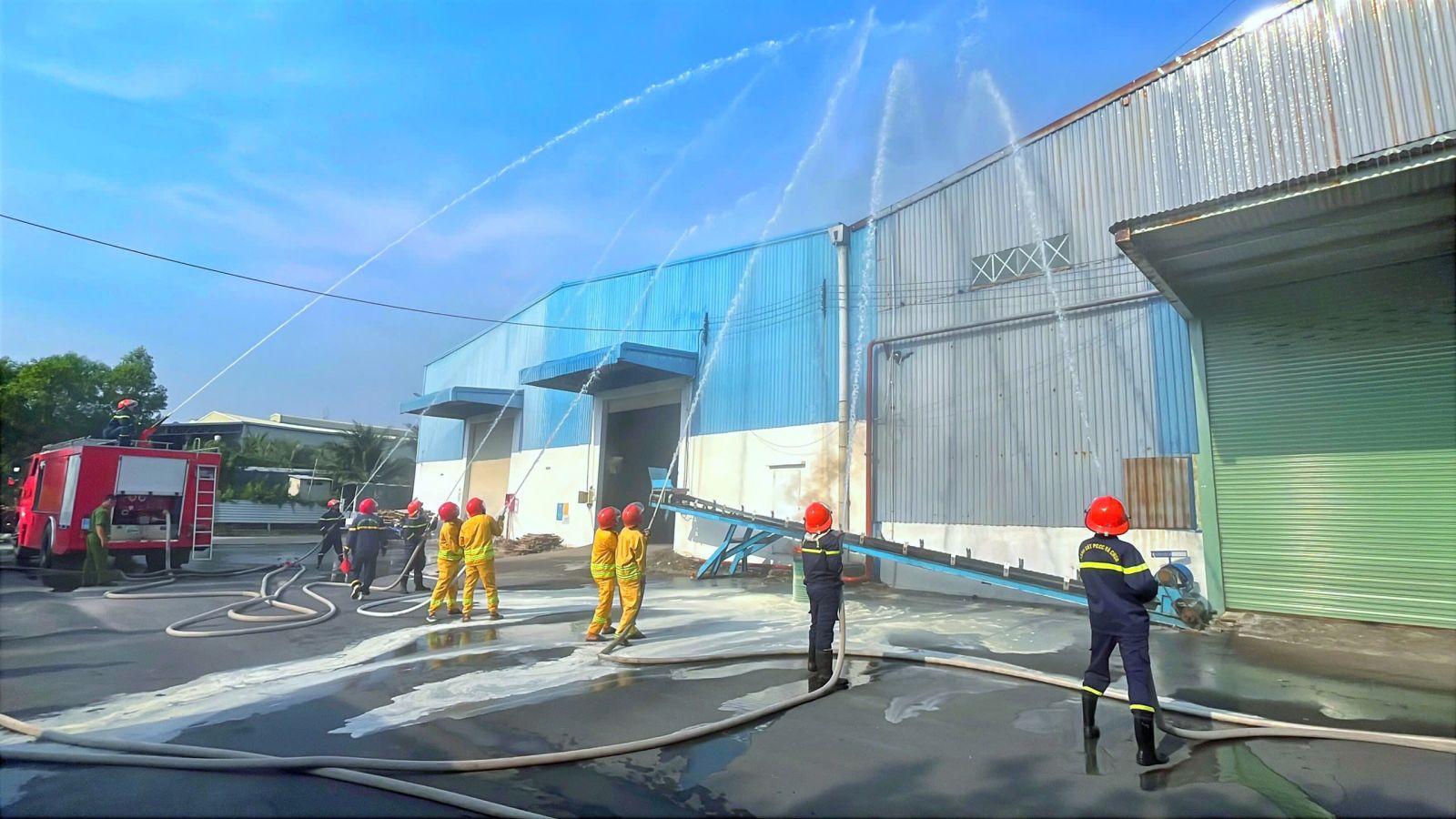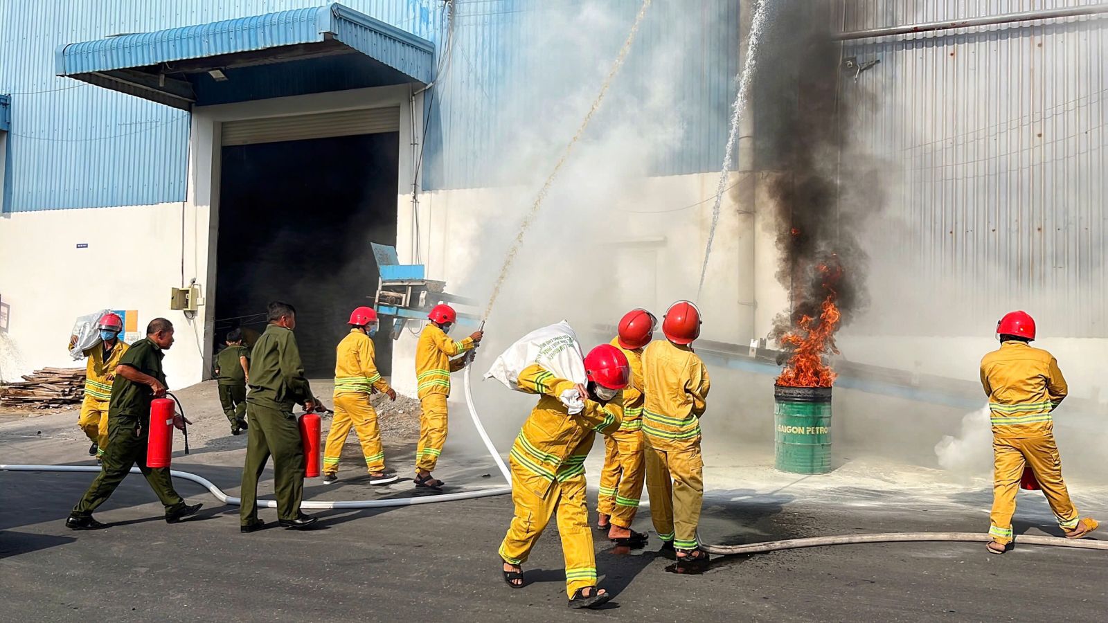 Tình huống giả định cháy xảy ra tại khu vực dây chuyền sản xuất phân bón NPK thuộc kho cảng Đức Thành (xã Trường Tây, thị xã Hoà Thành). Nguyên nhân cháy do sự cố thiết bị điện. Chất cháy chủ yếu là chất rắn dưới dạng phân bón, máy móc thiết bị điện…