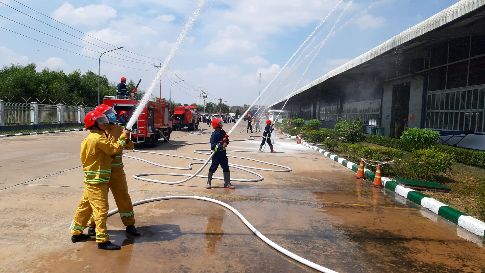 Tình huống giả định: cháy phát sinh tại xưởng 4 (kho nguyên liệu 40m2) của công ty, lúc này, có 80 công nhân đang làm việc. Đám cháy toả ra nhiều khói, khí độc, nguy cơ cháy lan sang các khu vực lân cận.