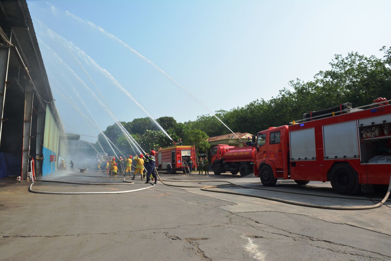 Tình huống giả định: Lúc 9 giờ, ngày 26.3.2025, xảy ra cháy tại xưởng sản xuất 1 bên trong nhà máy. Nguyên nhân cháy do sự cố về thiết bị kỹ thuật, máy móc làm phát sinh tia lửa dẫn đến cháy và lan sang dây chuyền sản xuất tại xưởng.