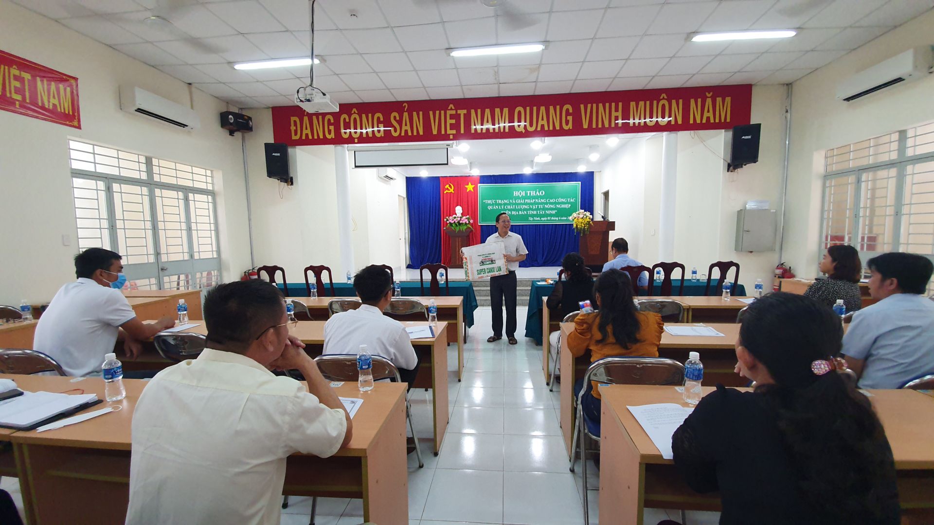 Dự hội thảo có ông Lê Văn Thiệt– Phó Cục trưởng Cục Bảo vệ thực vật, Bộ Nông nghiệp và phát triển nông thôn; ông Nguyễn Đình Xuân– Giám đốc Sở Nông nghiệp và Phát triển nông thôn cùng đại diện các hộ nông dân, hợp tác xã, doanh nghiệp sản xuất, kinh doanh vật tư nông nghiệp trên địa bàn tỉnh.