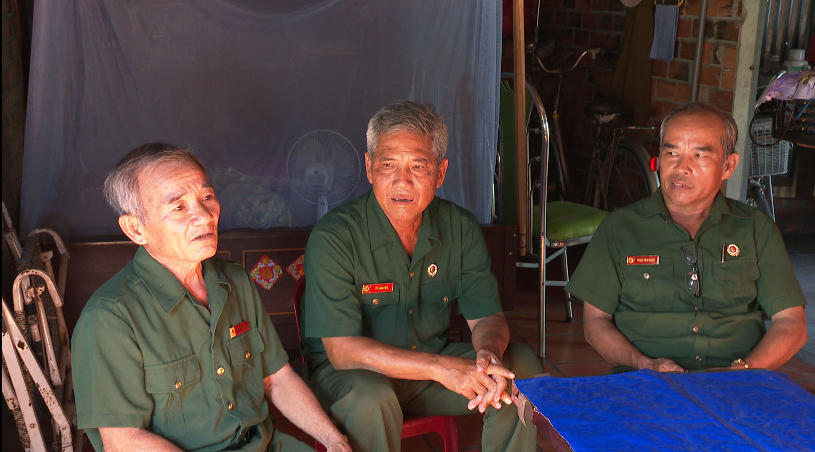 Thương binh Võ Văn Kiện (giữa) trong lần đến thăm đồng đội của mình.