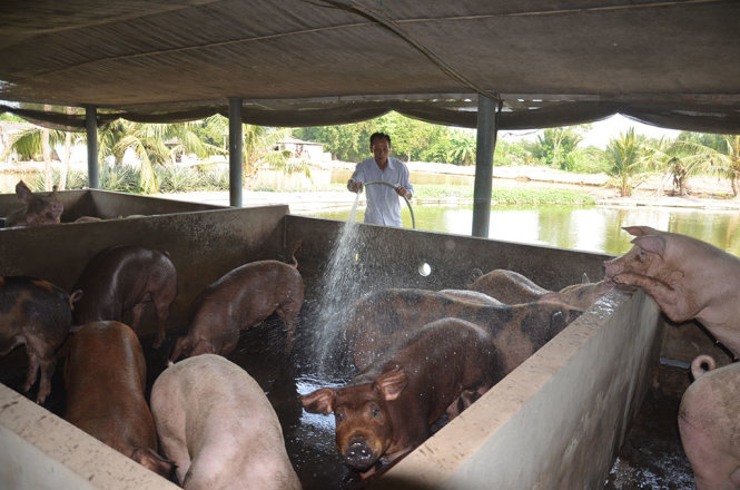 Giá heo tại ĐBSCL tăng lên ở mức 3 triệu đồng/tạ. Trong ảnh: một trại heo trong chương trình nuôi heo sạch tại huyện Tân Trụ, Long An - Ảnh: SƠN LÂM.