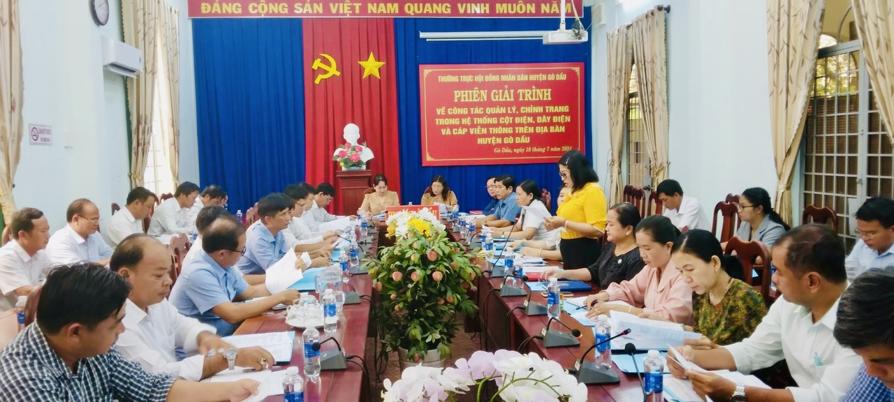 Chiều 18.7, bà Nguyễn Thị Thanh Nhàn- Phó Bí thư Thường trực Huyện uỷ, Chủ tịch HĐND huyện Gò Dầu làm trưởng đoàn có buổi làm việc với UBND huyện về công tác quản lý, chỉnh trang hệ thống cột điện, dây điện và dây cáp viễn thông trên địa bàn huyện.