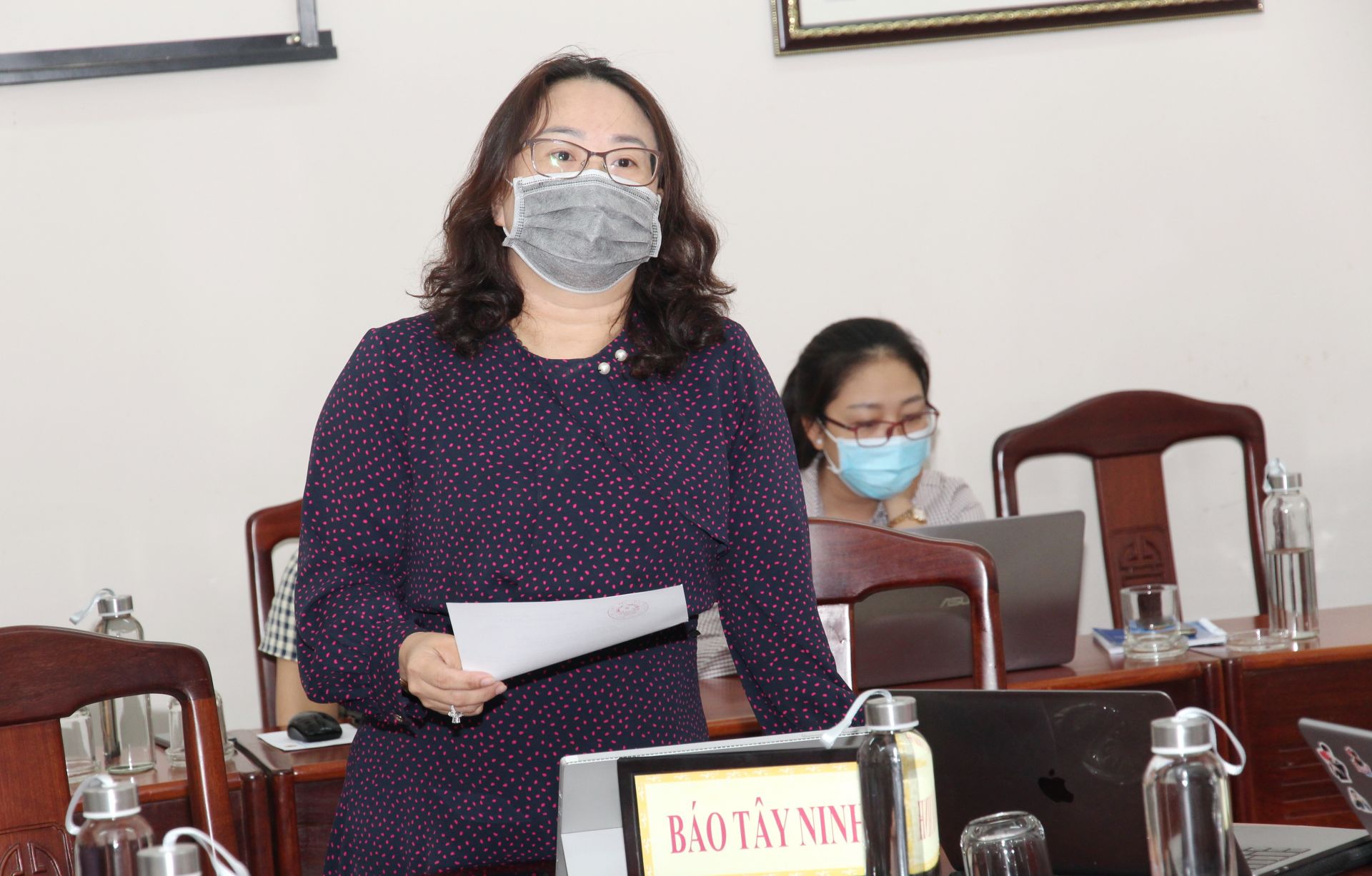 Phó Tổng Biên tập Báo Tây Ninh Kim Thị Hạnh đặt câu hỏi tại buổi họp báo.
