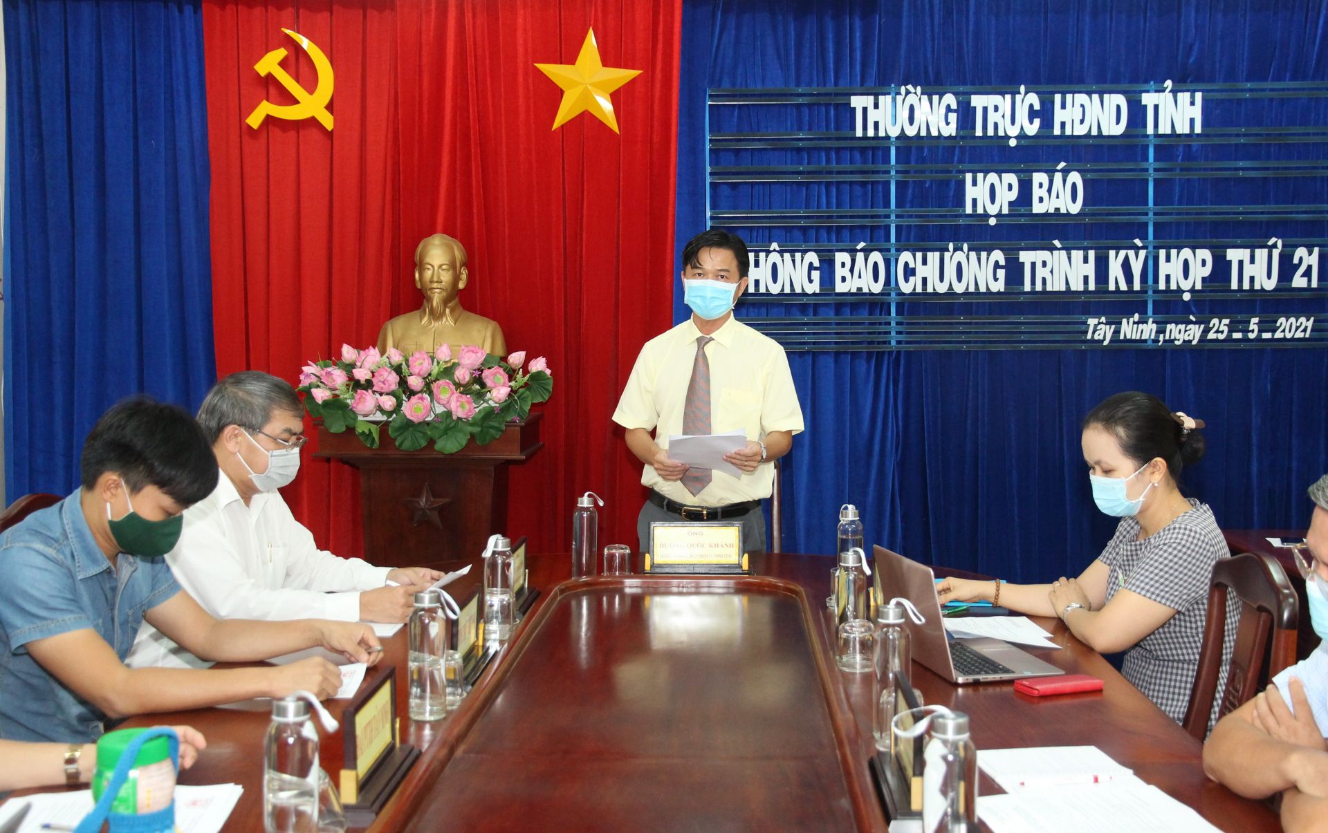 Chiều 25.5, Thường trực HĐND tỉnh tổ chức họp báo thông báo chương trình kỳ họp thứ 21. Ông Dương Quốc Khánh- Chánh Văn phòng Đoàn ĐBQH và HĐND tỉnh chủ trì hội nghị. Dự hội nghị có ông Nguyễn Thanh Phong- Phó Chủ tịch HĐND tỉnh.
